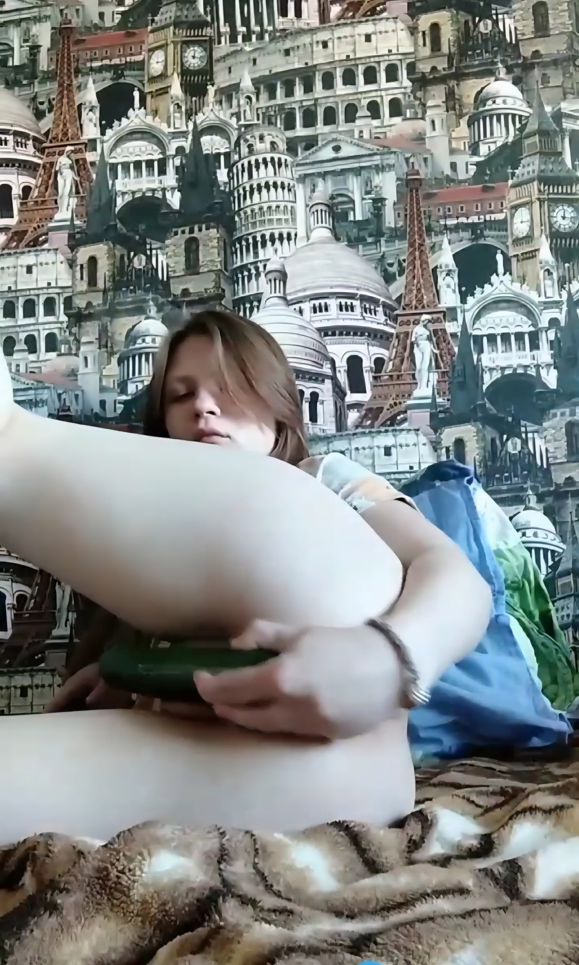 Perra se mete un pepino en la cuca y el culo